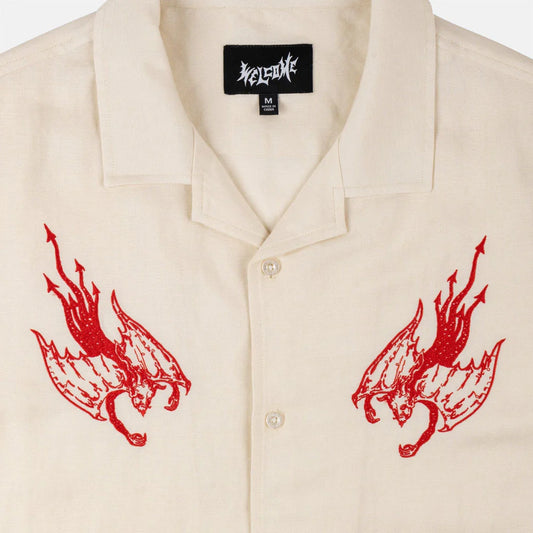 Welcome Skateboards - Hellion Embroided Linen Shirt Bone
