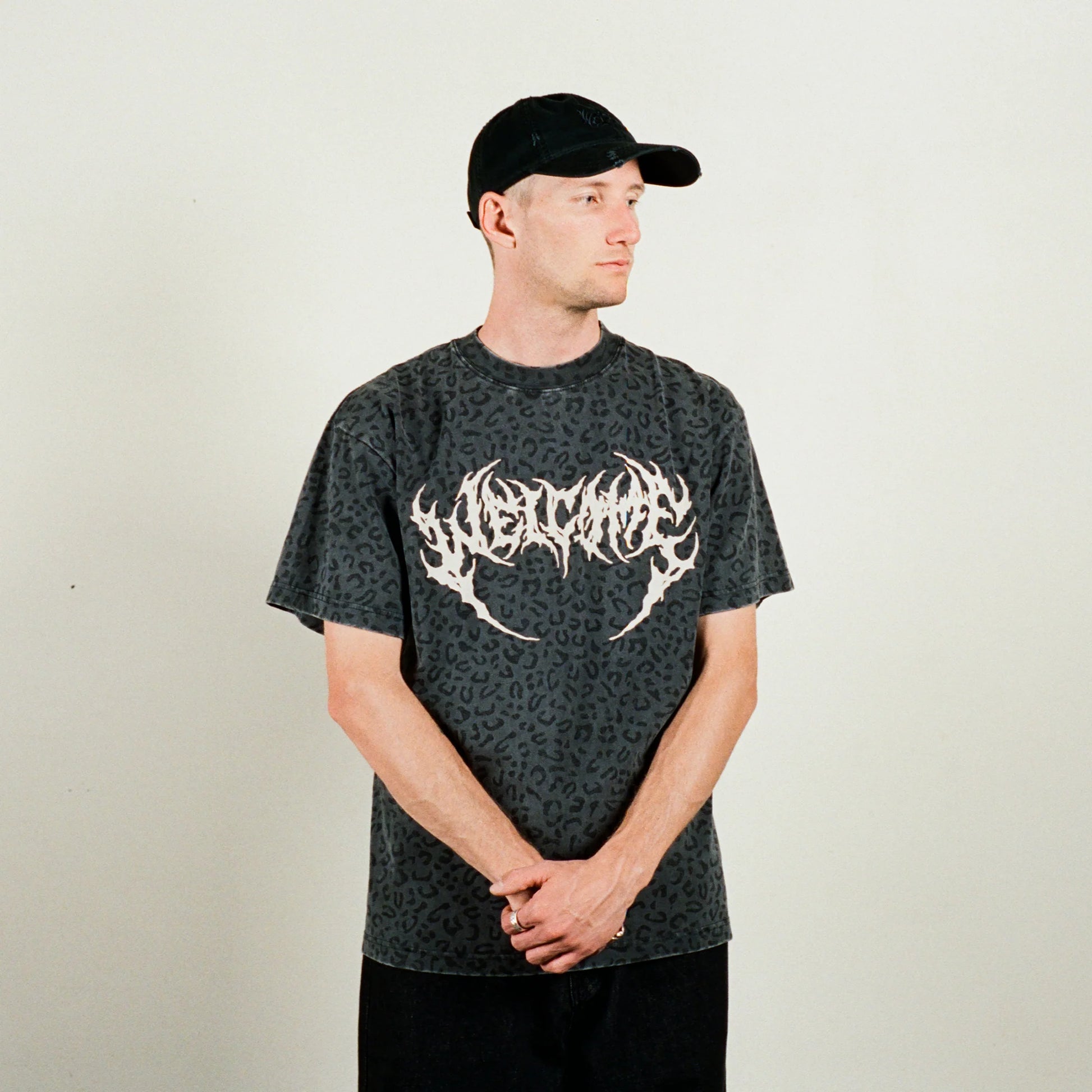 Welcome Skateboards - Fang Boxy Garment-Dyed Printed Vintage Black/Leopard