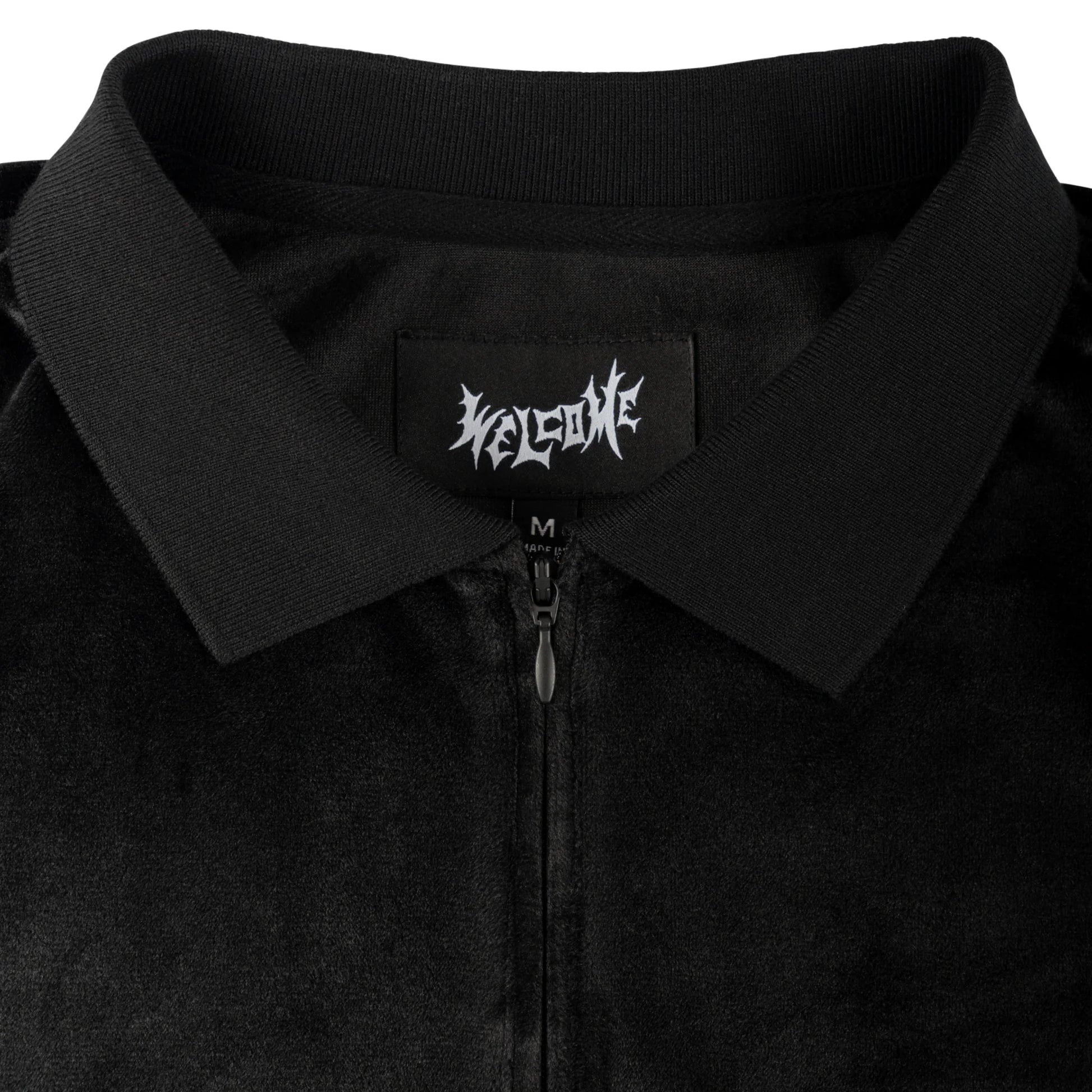 Welcome Skateboards - Grain Embroidered Velour Zip Polo - Black